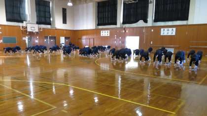 体育館ワックスがけ 第1部 公開日 2021/02/19 更新日 2021/02/19 今日の興南中 2月19日(金) 6限 今日のワックスがけは、急遽予定を変更して、3年1組と3年3組が体育館の雑巾がけを行いました。 急な変更でしたが、3年1組、3年3組のみなさん、ありがとう!