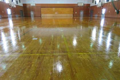 昨日、体育館のワックスがけを行ったので、床がピッカピカです!