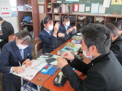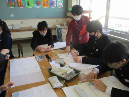 2年・授業風景 その1 公開日 2021/02/22 更新日 2021/02/22 今日の興南中 2月22日(月) 1限 2月最終週が始まりました。 (写真 上:2年1組 体育 ワックスがけ後で床がピカピカ) (写真 中:2年2組 美術 オリジナル手ぬぐい制作も大詰め) (写真 下:2年3組 家庭 まつり縫い)