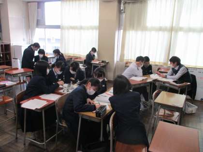 1年・質問教室 公開日 2021/02/22 更新日 2021/02/22 今日の興南中 2月22日(月) 15:00 1年は、「質問教室」を行いました。 分からない問題を先生に聞いたり、友達と教え合ったりしています。 明後日からの学年末評価に向けて頑張りましょう!
