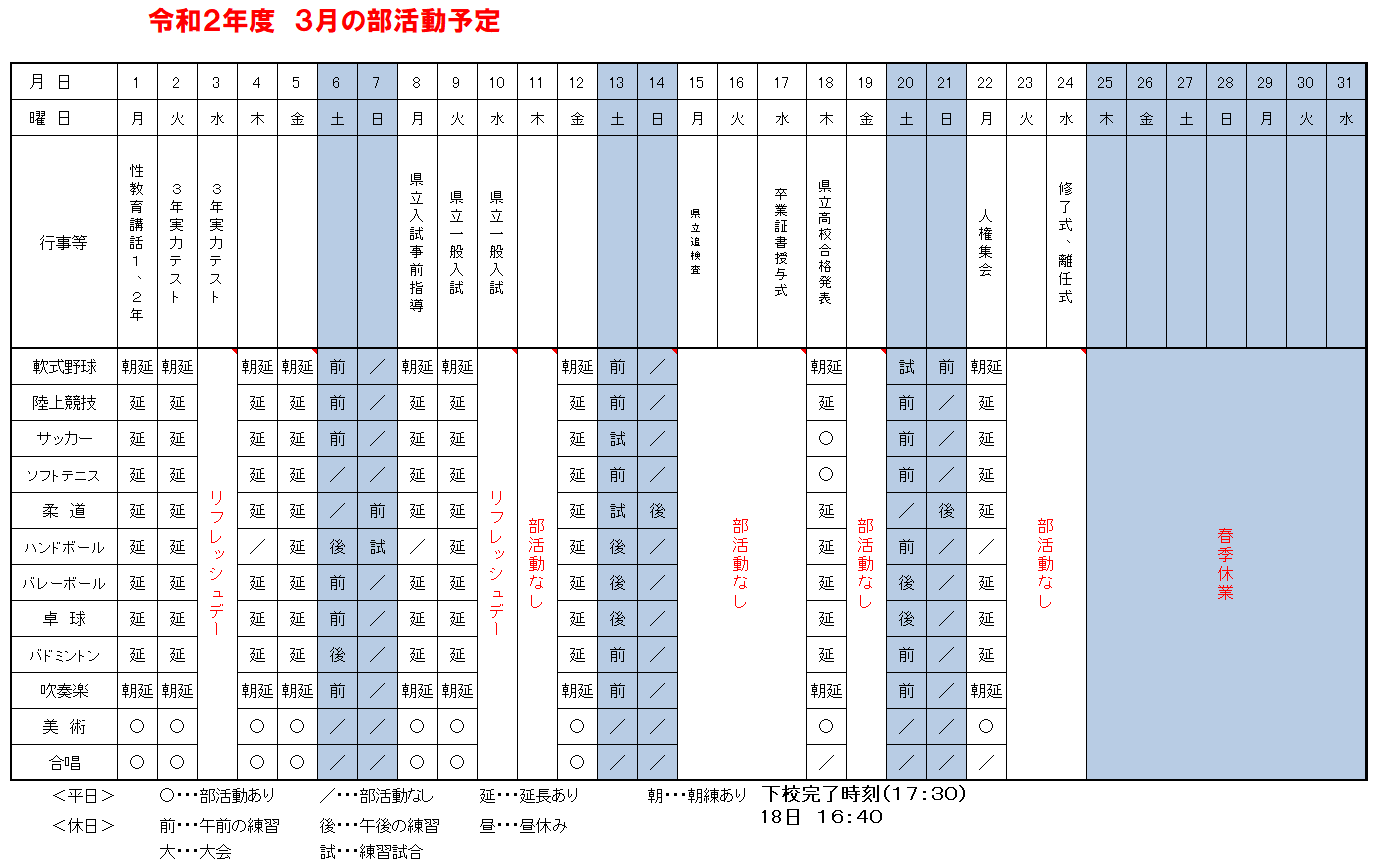部活「3月の活動予定」 をクリックしてご覧ください。