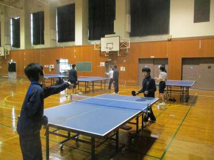 3月6日(土) 10:00 卓球部は、繰り返しゲーム形式で練習しています。
