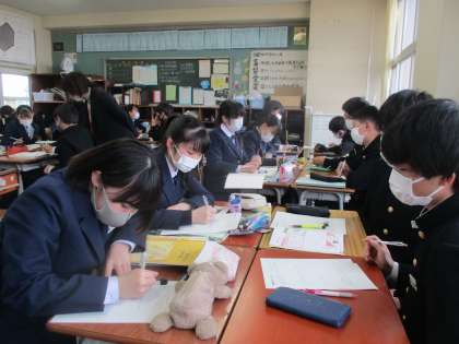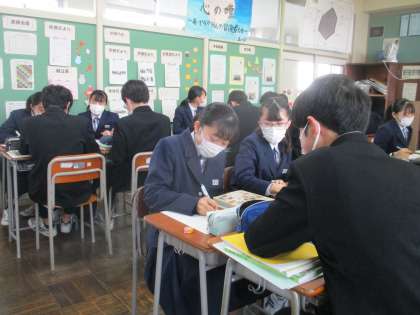 2年3組の家庭科は、「家庭・家族の一員としてできることはなんだろう?」を課題に授業を行いました。
