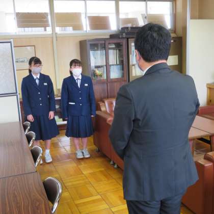 昼休みに校長室で「第7回 全日本ジュニア(U-17)水球競技選手権大会 -かしわざき潮風カップ-」に出場する選手への激励会を行いました。