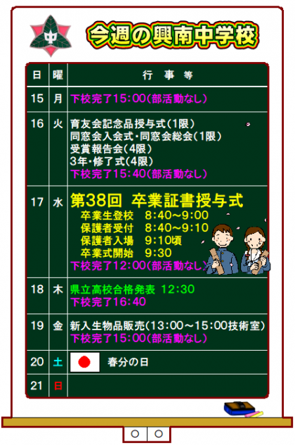 いよいよ17日(水)は「第38回 卒業証書授与式」です。