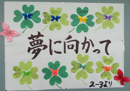 (写真 中:2年2組からのメッセージ)
