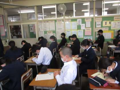 1年・今年度の振り返り 公開日 2021/03/16 更新日 2021/03/16 今日の興南中 3月16日(火) 3限 今年度の振り返りを書いています。 いろいろあった今年度・・・中学校生活が始まってからどんなことを頑張ったり、挑戦したりしたでしょうか? 気持ちを整理して、来年度に向けてしっかり準備をしましょう! (写真 上:1年1組 中:1年2組 下:1年3組)