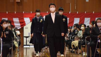 第38回 卒業証書授与式 その1 公開日 2021/03/17 更新日 2021/03/17 今日の興南中 3月17日(水) 9:28 卒業生入場です。 3年1組を先頭に入場します。 (写真 上:3年1組 中:3年2組 下:3年3組)