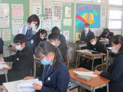 3年生が卒業し、2年生は興南中学校の最高学年としての気持ちをもって、授業に集中して受けています。