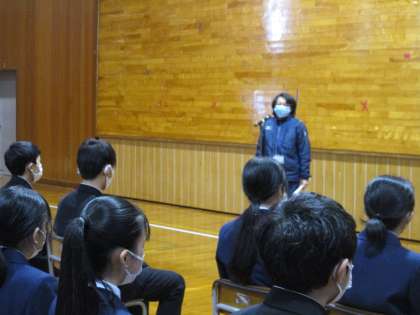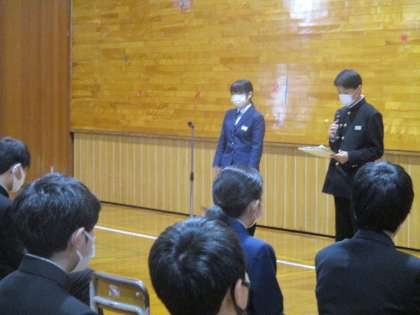 2年・最後の学年集会 公開日 2021/03/23 更新日 2021/03/23 今日の興南中 3月23日(火) 4限 2年生は、今年度最後の学年集会を行いました。 最初に、各クラスの学級代表が、1年間を振り返って、学級の様子や課題を発表しました。 その後、学年の先生から学習や進路、生活についての話を聞きました。 集会が始まるのを待つ姿や、話を静かに聞く態度からは、「4月から3年生」という決意が伝わってくるようでした!