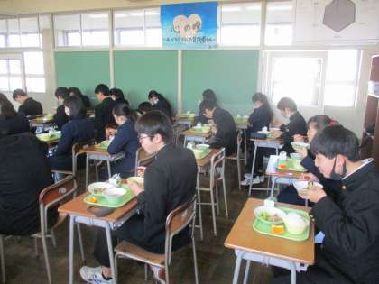 2年・給食ごちそうさまでした! 公開日 2021/03/23 更新日 2021/03/23 今日の興南中 3月23日(火) 12:50 今日は、今年度最後の給食でした。 準備もスムーズに、おいしそうに食べます。 春休み中も、健康的な食生活を心がけましょう!