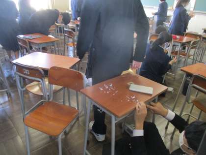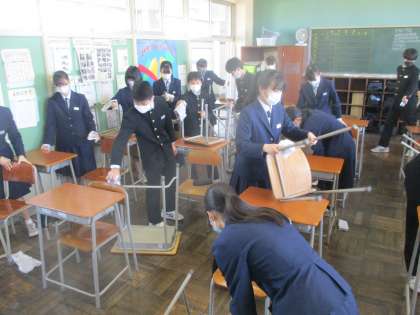 2年生は、1年間使用してきた個人ロッカーの清掃や机、椅子の脚のほこりとり、氏名シールとりを行いました。