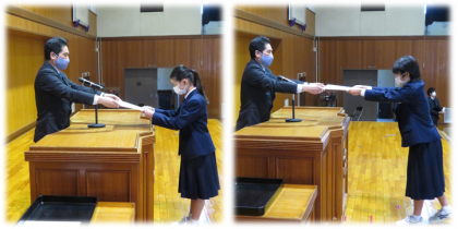 まず、各学年代表に修了証が授与されました。(写真:上)