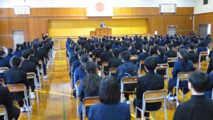 次に、校長先生から式辞があり、「プラスに考える春休みを過ごしてほしい」という話で、2つの視点をあげられました。
