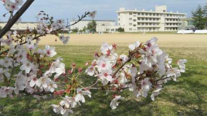 春を探して その1 公開日 2021/04/03 更新日 2021/04/03 今日の興南中 4月3日(土) 14:00 気温は20度を超え、21度になりました。 青空が広がり、ポカポカの春の陽気につつまれています。 グラウンドの興南桜は満開を過ぎ、散り始めています。(写真) 明日は雨が降るので、一気に散ってしまう可能性も……。