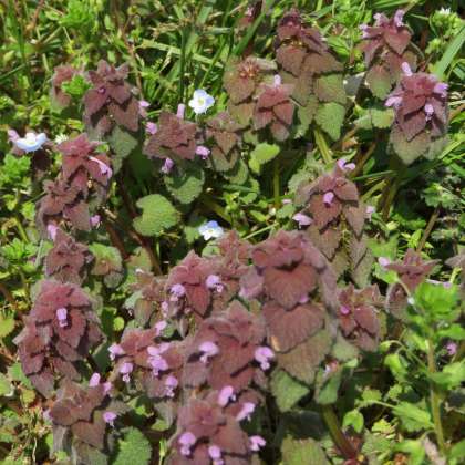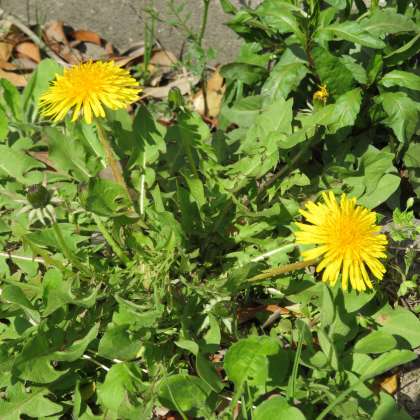 (写真 左:タンポポ  中:ムスカリ  右:ヒメオドリコソウ)