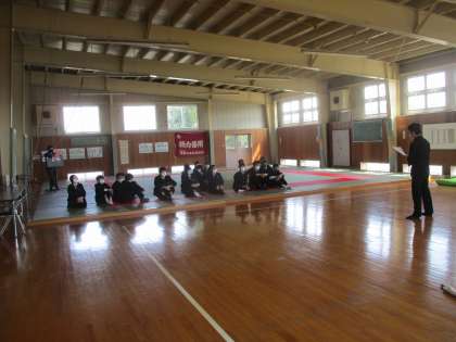 (写真 上、中:体育館で生徒会・各実践部の説明練習)