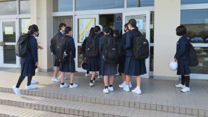 生徒玄関解錠 公開日 2021/04/07 更新日 2021/04/07 今日の興南中 4月7日(水) 7:40 気温は11度、天気は晴れ。 朝はヒンヤリしていますが、日差しが届き、暖かくなりそうです。 昨日、お知らせしたように、7:40に生徒玄関を解錠しました。 (今朝は、30名ぐらいの生徒が解錠を待っていました。) 生徒が続々と生徒玄関に入ってきました。(写真) 爽やかな朝のようすです!