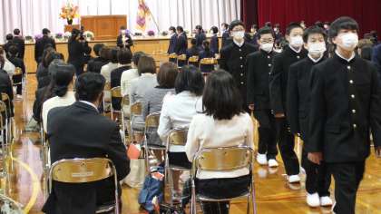 4月8日(木) 10:05 新入生は担任を先頭に退場しました。 このあと、教室で初めての学活を行います!!