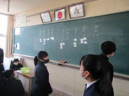 3年・学活 公開日 2021/04/09 更新日 2021/04/09 3年生 4月9日(金) 2〜4限 3年生は、各学級で学級の組織づくりを行いました。 実践部への所属や係活動の分担を決めたり、新しい学級のメンバーとともにエンカウンターを行いました。 (写真 上:3年1組 中:3年2組 下:3年3組)