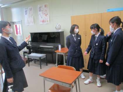 (写真 下:吹奏楽部 2年生部員のお出迎え)