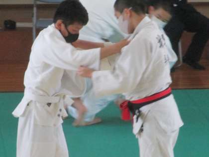 柔道部・県強化練習会・その1 公開日 2021/04/10 更新日 2021/04/10 2年生 4月10日(土) 10:00 柔道部は、県営武道館で行われた「県強化練習会」に参加しました。 (写真:赤い帯を付けていない選手が興南中)