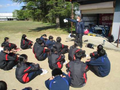 陸上競技部は、コーチからメニューの説明を受けて練習に励んでいます。