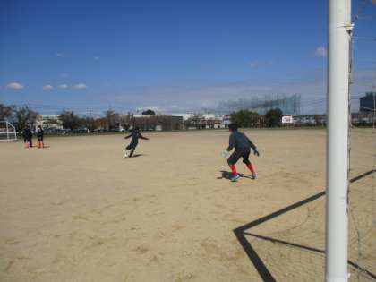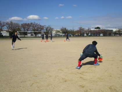 今年度初めての休日部活動・その2 公開日 2021/04/10 更新日 2021/04/10 今日の興南中 4月10日(土) 9:00 サッカー部は、キーパーと1対1のシュート練習をしています。 少ない人数ですが、効率よく練習しています。