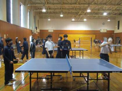 今年度初めての休日部活動・その3 公開日 2021/04/10 更新日 2021/04/10 今日の興南中 4月10日(土) 10:00 (写真:上) バレーボール部は、サーブ練習を行っていました。 (写真:中、下) 卓球部は、ゲーム練習に審判を付けて行っていました。 部員で役割を決めて、練習に励んでいます。