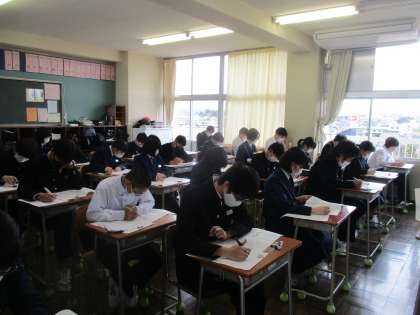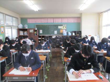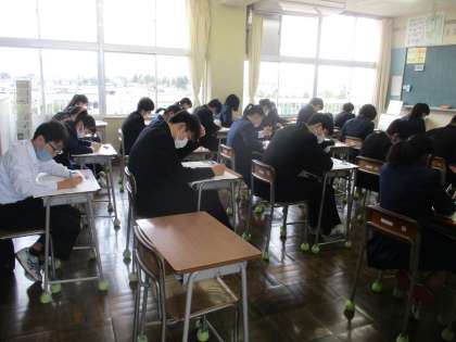 3年・中教研学力調査・2日目 公開日 2021/04/13 更新日 2021/04/13 3年生 4月13日(火) 1限 社会 中教研学力調査・2日目は、社会と数学です。 生徒たちは真剣に問題に取り組んでいます。 (写真 上:3年1組 中:3年2組 下:3年3組)