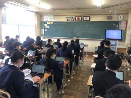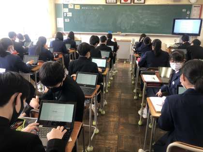 3年・理科・「クロームブックを使って!」 公開日 2021/04/13 更新日 2021/04/13 今日の興南中 4月13日(火) 4限 中教研学力調査が終わり、本格的に授業がスタートしました。 3年3組の理科では、さっそく、昨年導入されたクロームブックを使っての授業です。 楽しそうです!