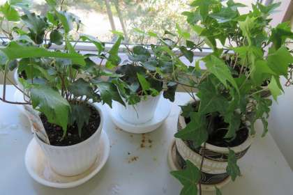 職員室前廊下の観葉植物にヘデラ(アイビー)が続々と増えました。