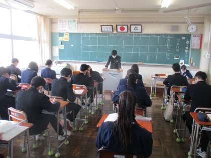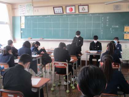 3年・学級討議・その1 公開日 2021/04/19 更新日 2021/04/19 3年生 4月19日(月) 1限 生徒総会に向けて、執行部と実践部の活動に対する質疑等の学級討議をしました。 (写真 上:3年1組 中:3年2組 下:3年3組)