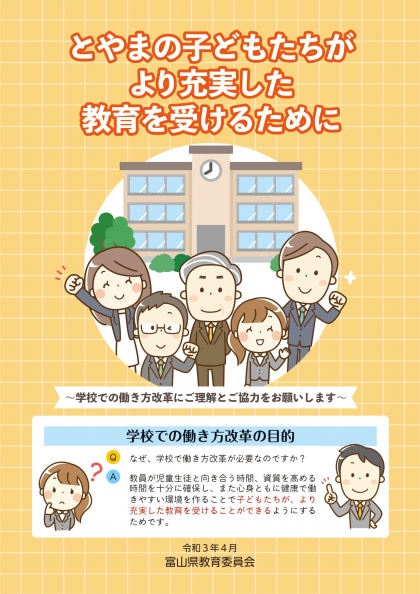 県教育委員会から、「とやまの子どもたちがより充実した教育を受けるために」のパンフレットのデータが届きましたのでお知らせします。