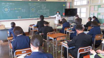 (写真 中:3年2組の理科の授業)