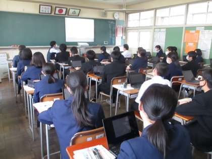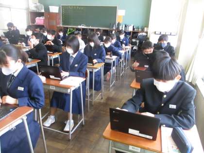 4月21日(水) 2限 2年3組の道徳は、クロムブックを用いて授業を行いました。