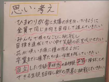 3年・「学年目標を掲示しました!」 公開日 2021/04/22 更新日 2021/04/22 3年生 4月22日(木) 放課後 3年生は学年掲示板に学年目標を掲示しました。 学年目標に込められた思いが、熱く伝わってきます。