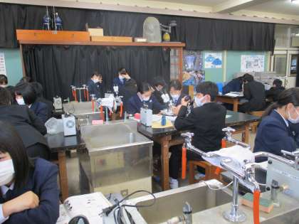 1年・理科・花の観察 公開日 2021/04/23 更新日 2021/04/23 1年生 4月23日(金) 3限 1年3組の理科は、科学室で、双眼実験顕微鏡を使って、タンポポやアブラナの花を観察していました。 双眼実体顕微鏡を使って観察すると立体的に観察できていいですね。 1年3組の生徒は初めて使ったのですが、上手にピントを合わせることができました。