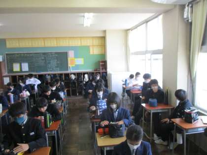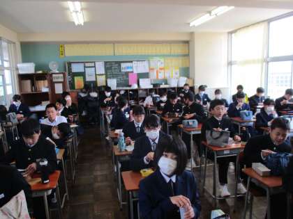 2年・弁当ありがとうございます! 公開日 2021/04/24 更新日 2021/04/24 2年生 4月24日(土) 昼食 今日は、お忙しいところ授業参観、学年懇談会へ来校いただきありがとうございます。 また、お弁当の準備もありがとうございました。 (写真 上:2年1組 「いただきます」) (写真 中:2年2組 「ありがとう」) (写真 下:2年3組 級友のお弁当を見ています)