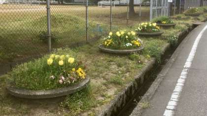 フラワーロードは今…… 公開日 2021/04/25 更新日 2021/04/25 今日の興南中 4月25日(日) 8:00 写真は、現在のフラワーロードのようすです。 ちょっと雑草が目立ちますが、チューリップもまだまだ咲いています! 今後の予定は 秋のはな撤去…5月25日(火)15:45分より 春のはな植栽…6月2日(水)15:45より です。 今年度もフラワーロード、よろしくお願いします!!