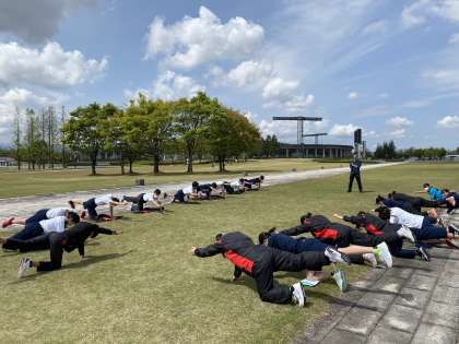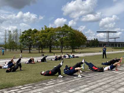 4月25日(日) 10:00 陸上競技部は、県総合運動公園で体幹トレーニング中です!