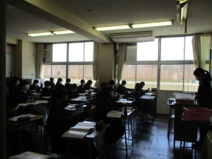 4月27日(火) 2限 1年2組の家庭科の授業風景です。 担任の先生の授業は、どの授業よりも集中しています。