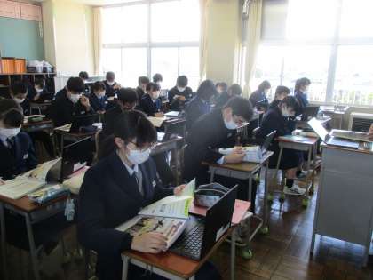 3年・英語・「クロームブックを活用」 公開日 2021/04/27 更新日 2021/04/27 3年生 4月27日(火) 2限 3年1組の英語は、「クロームブック」で読み取ったQRコードから発音やその他の授業に必要な情報を確認しました。