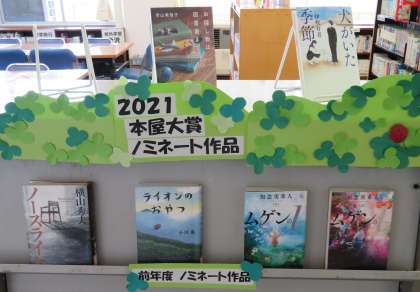 図書室には、本屋大賞ノミネート作品(写真:上)や新刊(写真:下)が続々と紹介されています。