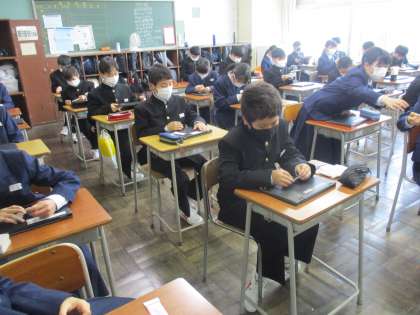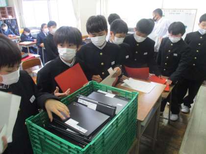 1年・クロームブックを! 公開日 2021/04/30 更新日 2021/04/30 1年生 4月30日(金) 5限 いよいよ1年生もクロームブック活用のための準備が始まりました。 今日は自分のクロームブックを受け取り、ネームシールを貼ったり、パスワードを決めたりしました。 (写真 上:1年1組 中:1年2組 下:1年3組)
