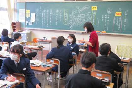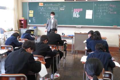 (写真 上:1年1組 数学の授業)