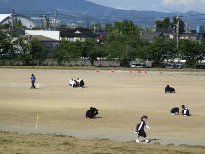 2年・朝ボラ 公開日 2021/05/11 更新日 2021/05/11 2年生 5月11日(火) 7:50 今週の朝ボラは、2年1組が担当しています。 朝の陽ざしを浴びながら、グラウンドの除草作業をしていました。