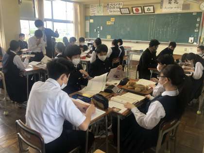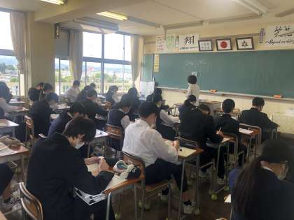 (写真 上:3年1組 意見を発表しています)