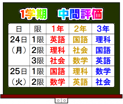 24日(月)から「1学期・中間評価」が始まりますが、テスト勉強は順調に進んでいますか?