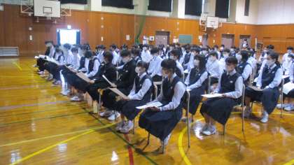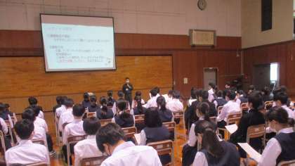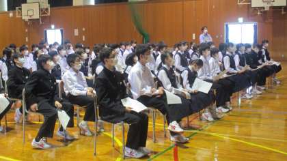 1年・総合的な学習の時間・その1 公開日 2021/05/21 更新日 2021/05/21 1年生 5月21日(金) 5限 1年生は、これから総合的な学習の時間に「富山の『本気』を発見しよう」というテーマで調べ学習を行います。 今日は学年集会でオリエンテーションを行い、調べ方や日程について説明を聞きました。